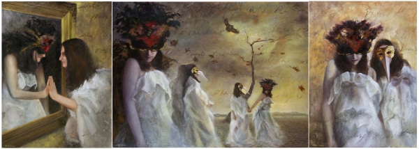 Washington based artist Margo Selski is known for her “lush Surrealist paintings that quote Flemish painting and 19th century portraiture.” Selski has a B.A. in Studio Art and Art Education Berea College, in Kentucky, an Master of Arts for Children S.U.N.Y. Brockport, New York, and a Master in Fine Art in drawing and painting from the University of Minneapolis, Minnesota.