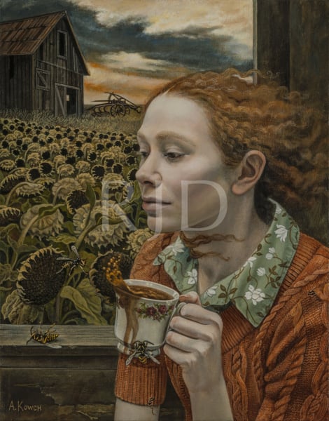 “Inspired by memories, inner emotions, history, and my fascination with nature and the human psyche, the stories behind my paintings stem from life’s emotions and experiences, resulting in narrative, allegorical imagery that illustrates the parallels between human experience and the mysteries of the natural world.