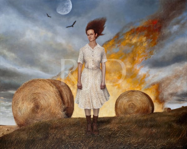The lonely, desolate American landscape encompassing the paintings’ subjects serves as an exploration of nature’s sacredness and a reflection of the human soul, symbolizing all things powerful, fragile, and eternal. These real, yet dreamlike, scenarios serve as metaphors for the human condition, all retaining a sense of vagueness because I wish to involve and motivate the viewer in uncovering the various layers of mood and meaning to form conclusions from their own perspective, despite that my main idea will always be before them.