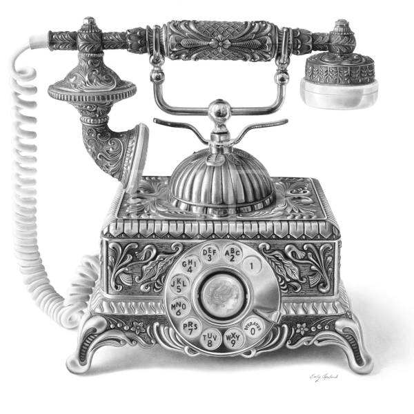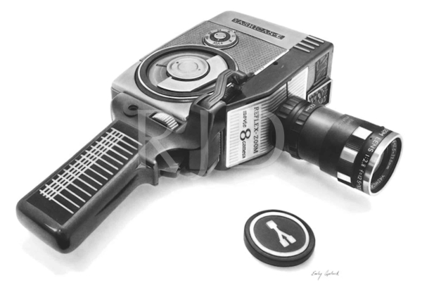 She enjoys focusing on detailed vintage or retro objects as her subject matter. The elements within her drawings are blown up much larger than life size to give it a surreal effect. This gives the audience a unique viewpoint that exposes detail they wouldn’t normally see. She also brings vintage objects into a modern context by conveying them on plain, clean backgrounds.