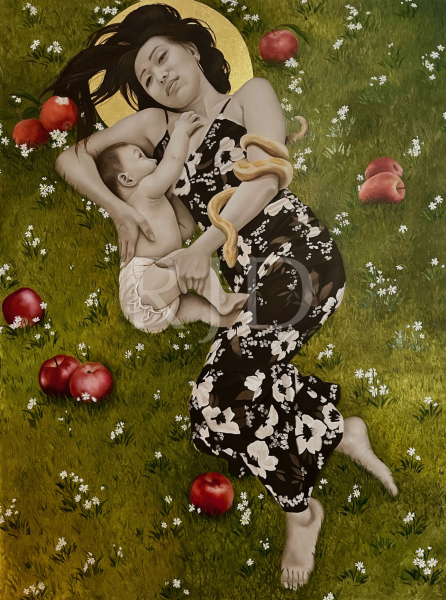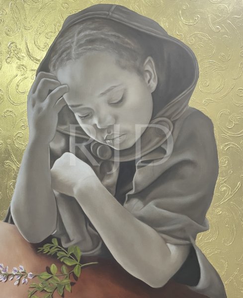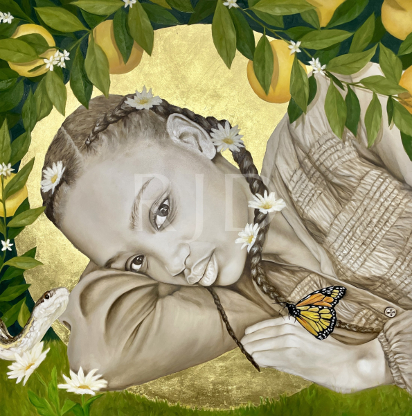 In my series, titled “Garden of Eden”, I paint the “everyday” woman, focusing on women of color. These women have a beauty that goes deeper than what is on the surface. There is an inner strength I want to show, a fierceness that makes these images powerful to the viewer. These women that I see every day in my community, reflect what the real world looks like, not the white-washed, superficial beauty that can flood television, movies, media and art. These women are real. They are mothers, daughters, sisters. They are teachers, lawyers, students, home-makers, and more. I want to celebrate these women and show that every woman deserves to be portrayed in art.