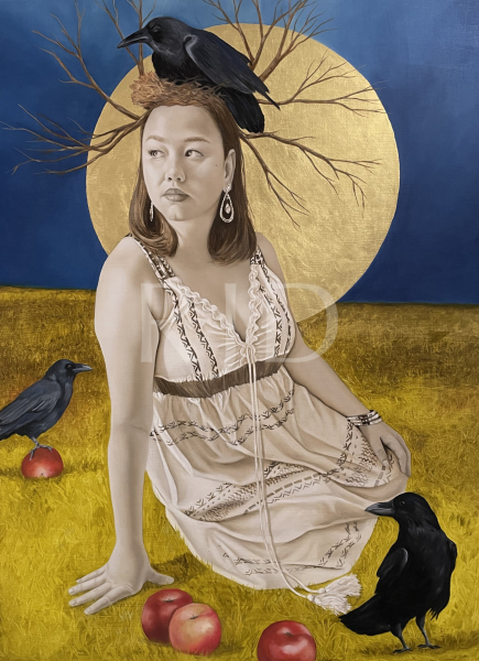 Jhina (pronounced He-nah) Alvarado is a self-taught, figurative artist who started painting in her late twenties. Having been afraid to paint a portrait or a human figure, she painted mostly abstracted art with elements of realism within each work. In 2009, feeling frustrated artistically, she decided to challenge herself and painted her first portrait and now exclusively paints figuratively. As a woman of color, who is half Mexican and half Korean, she struggled with finding art that represented women who looked like her. To fix this, her recent work focuses on people, mostly women, of color who she sees in her community.